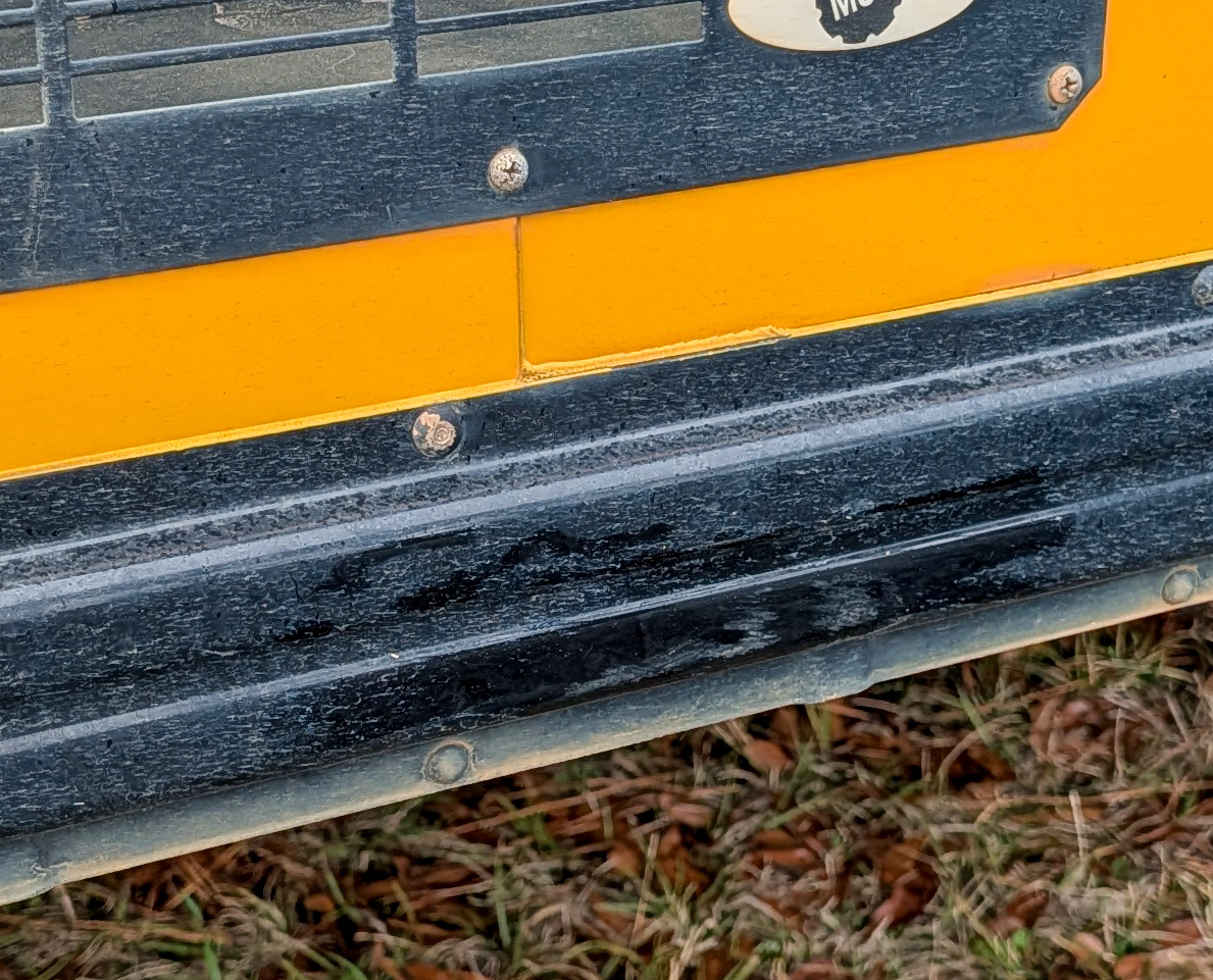 The bus was barely scratched as dust was wiped off a small area of the driver’s side.