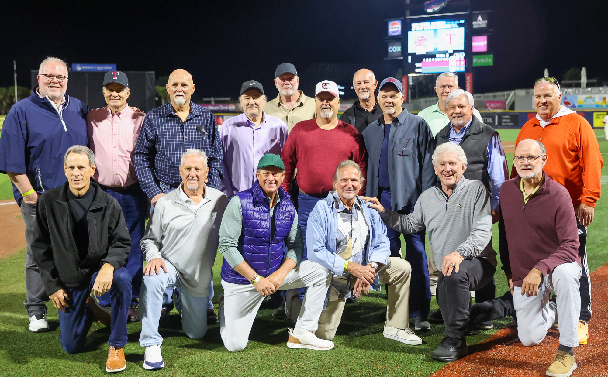 Before Friday night’s matchup between the Tate Aggies and Escambia Gators at Blue Wahoos Stadium, 1970s state championship teams from both schools were honored.