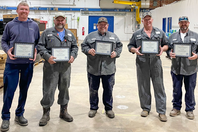 Eight mechanics at Ascend Performance Materials were recently recognized for achieving a major professional milestone by passing the NCCER (National Center for Construction Education and Research) certification test.
