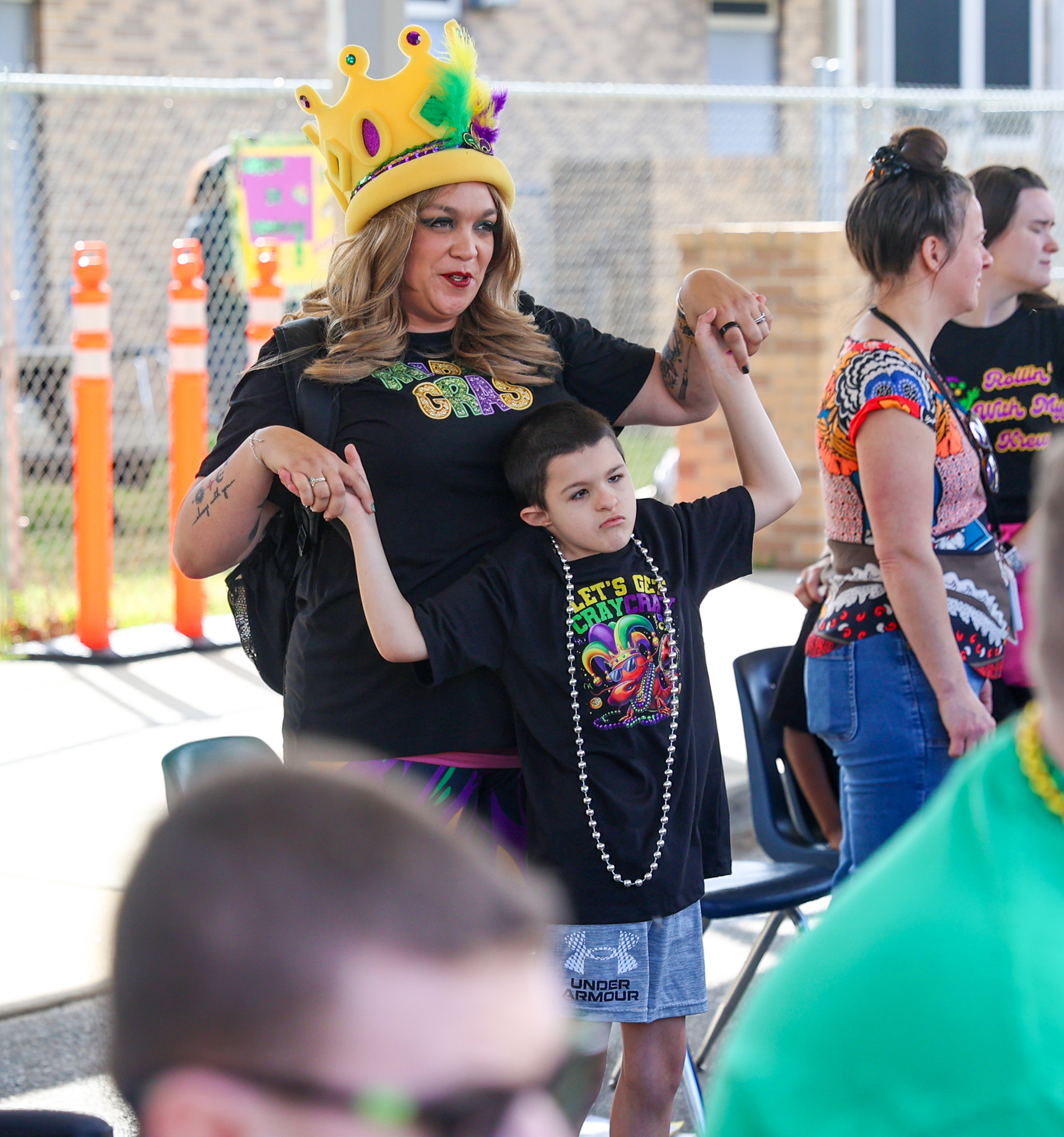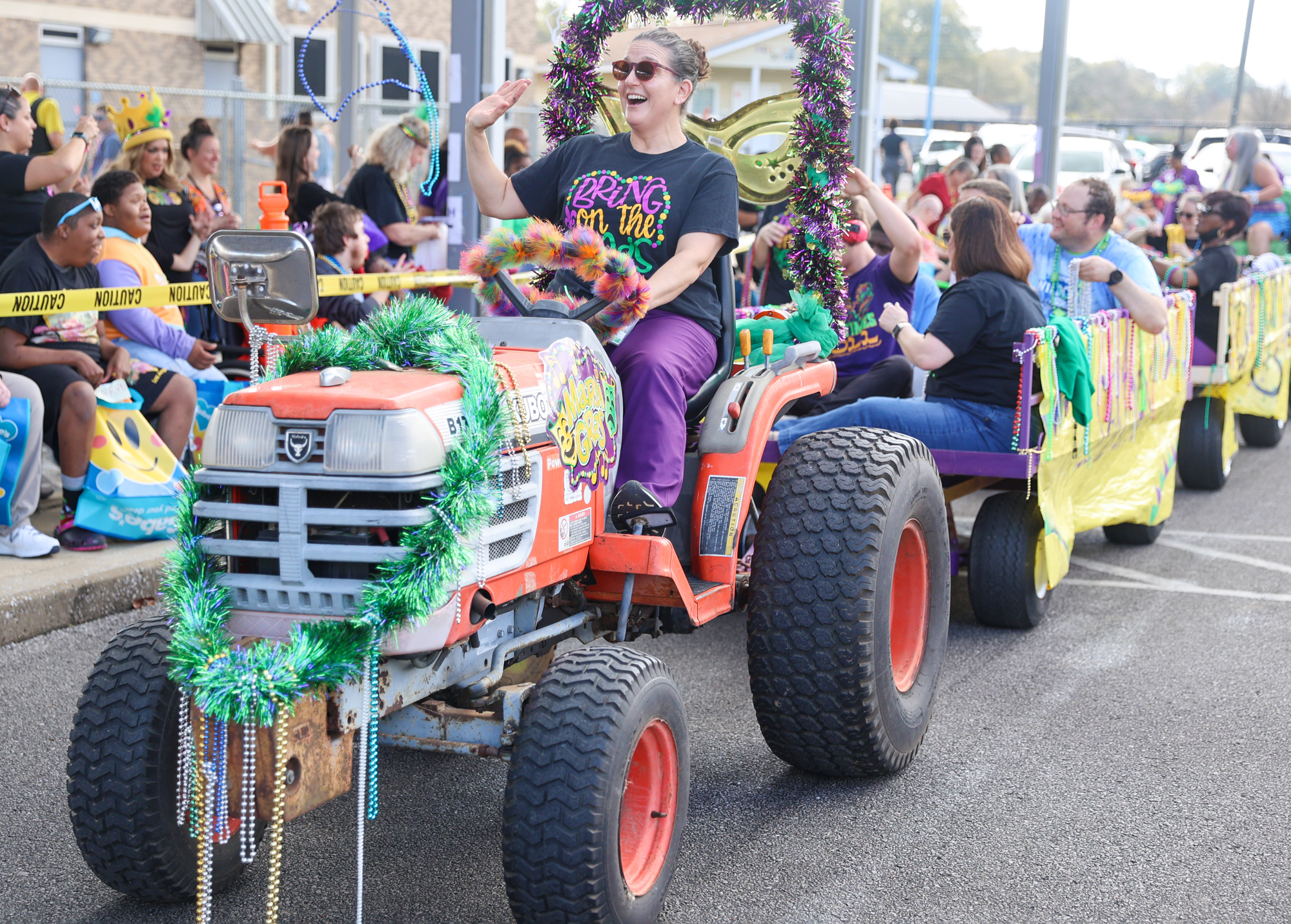 With plenty of beads, trinkets, smiles, and Mardi Gras krewes, the parade rolled through the school parking lot for students with sensory issues that might not otherwise be able to attend a regular Mardi Gras parade.