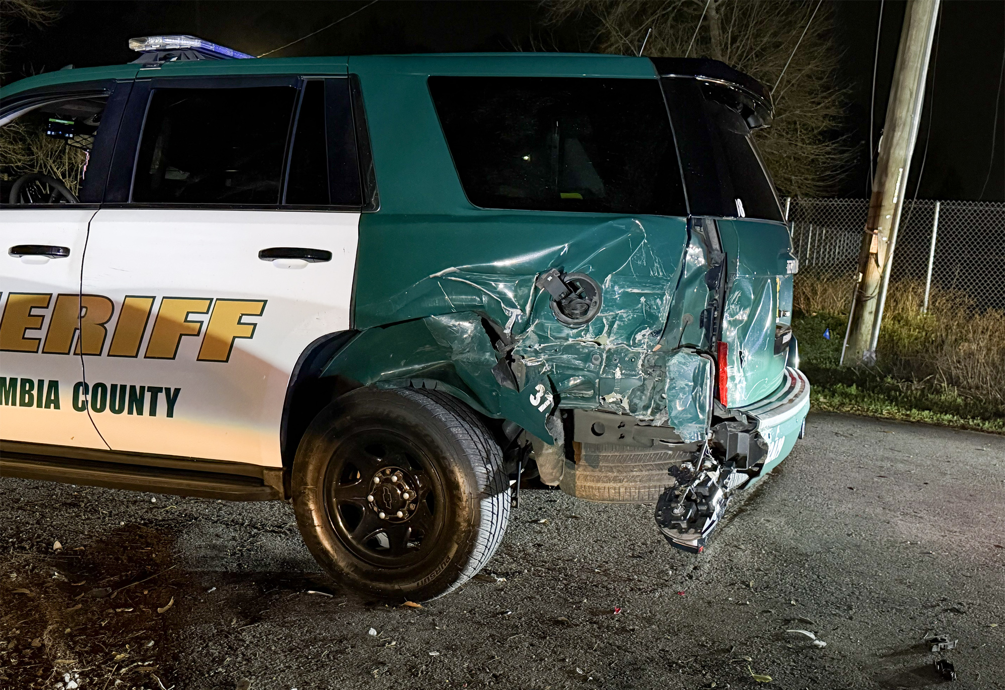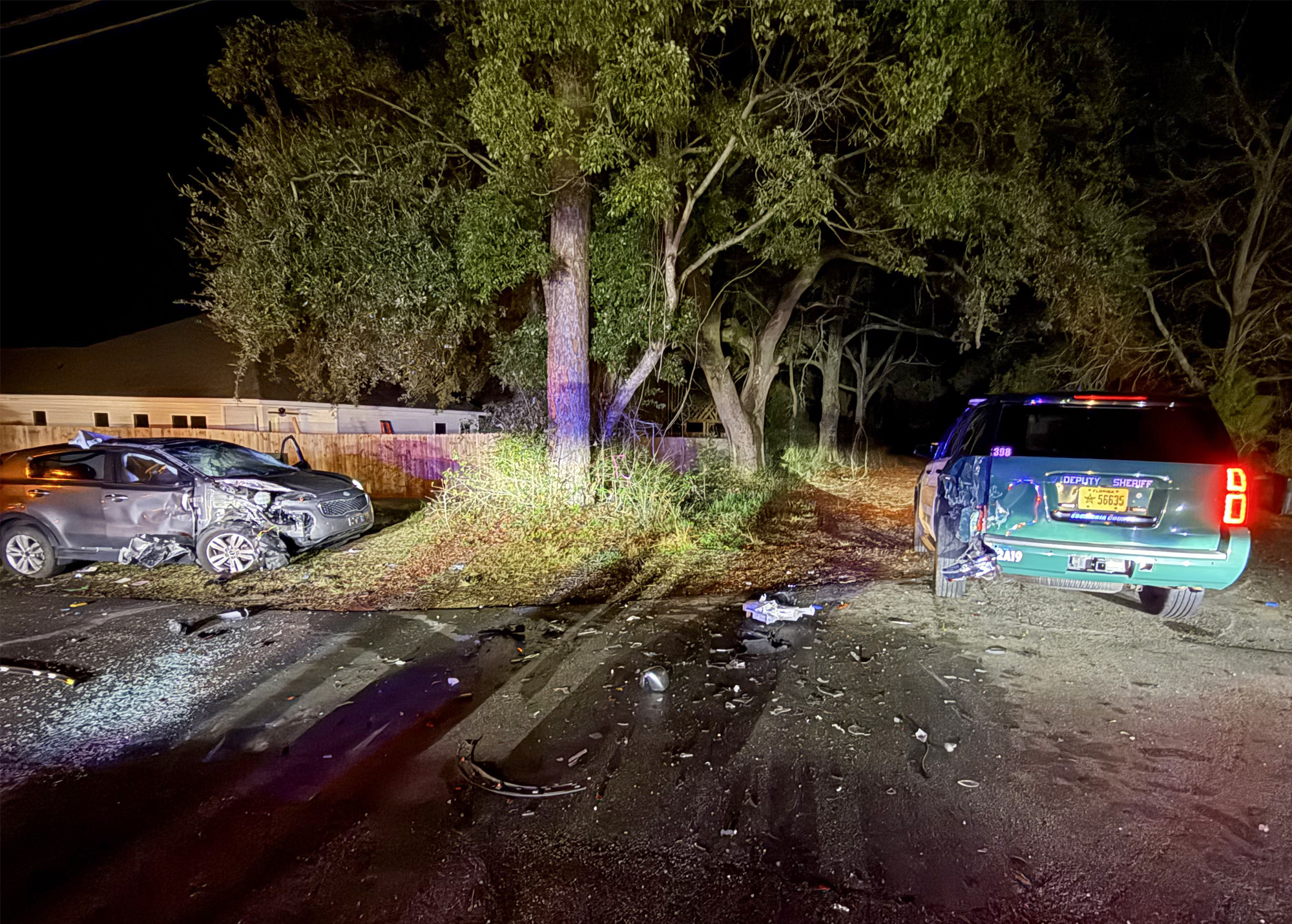 The crash occurred around 11:40 p.m. on West Roberts Road near Sutton Place Drive. The deputy was reportedly just off the roadway when her cruiser was struck by the SUV.