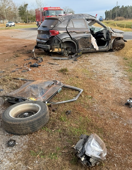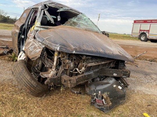 The crash occurred shortly after 7:30 a.m. on Highway 29 at Camde Lane, just north of the Escambia County Sheriff’s Office and a self-storage facility. The vehicle came to rest upright just off the roadway.