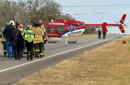 The female driver was airlifted by a Lifeguard helicopter to an area hospital in serious condition.