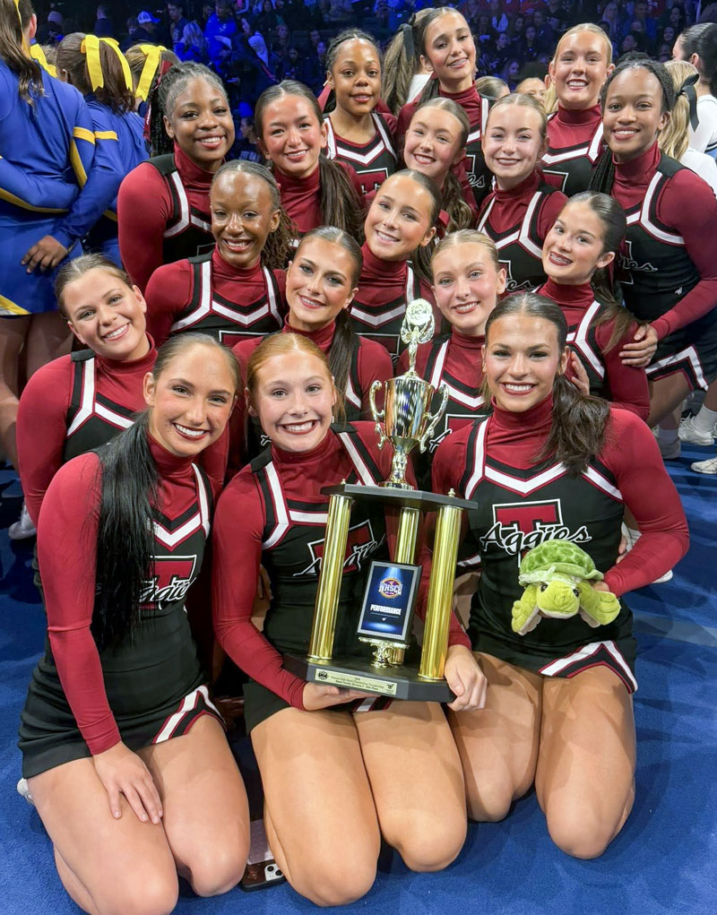 The junior varsity Aggie cheerleaders earned fifth place in the nation.