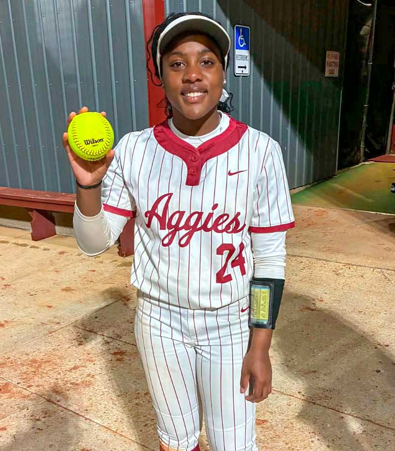 At the plate, Mitchell led the Aggies as she went 3-4, and Padgett went 2-4. Robinson had four RBIs, and Mitchell added two runs batted in.