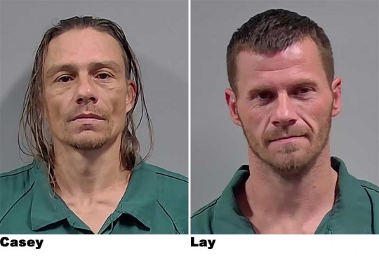 James Allen Casey, 46, and Michael Sheldon Lay II, 37, are both facing multiple charges including 18 counts of burglary of an unoccupied conveyance, grand theft, and trespassing.