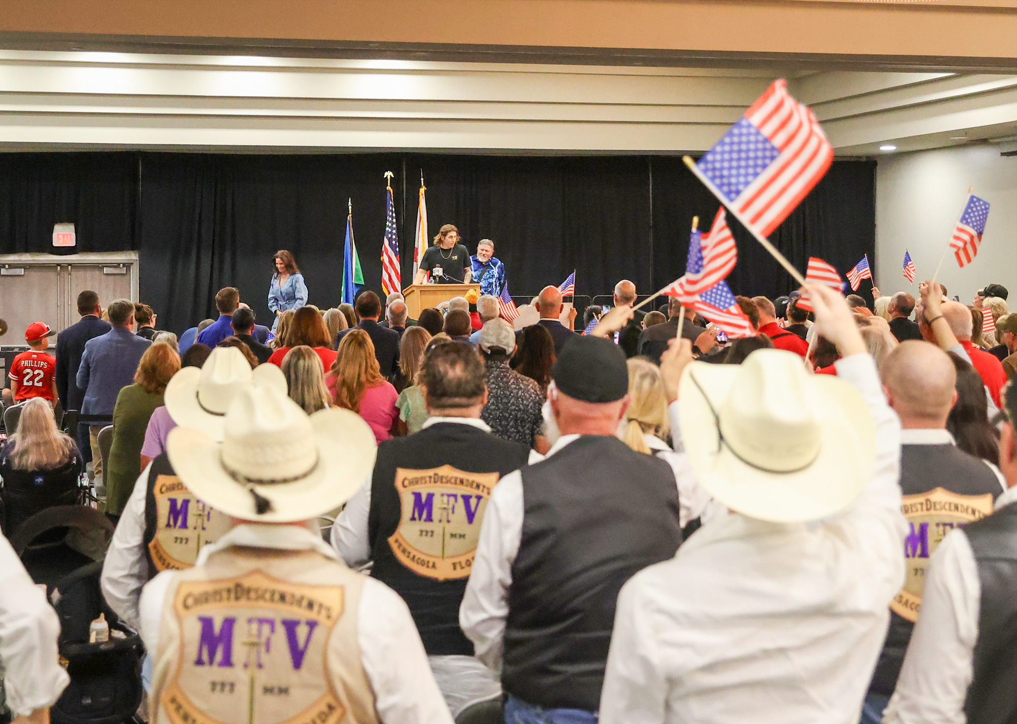 “Hunter, it takes a pretty special person to run back into the war zone,” Florida Lt. Governor Jay Collins told Girdner during Saturday evening’s event. “Thank you for living up to your heritage of your time in the military, and thanks for standing up for John.”