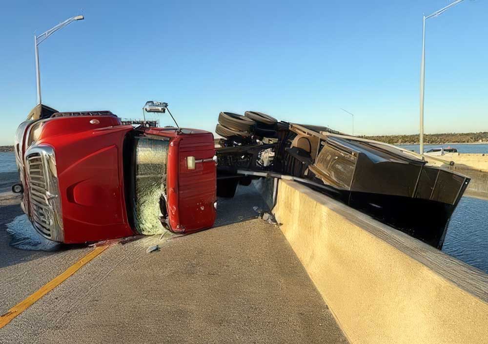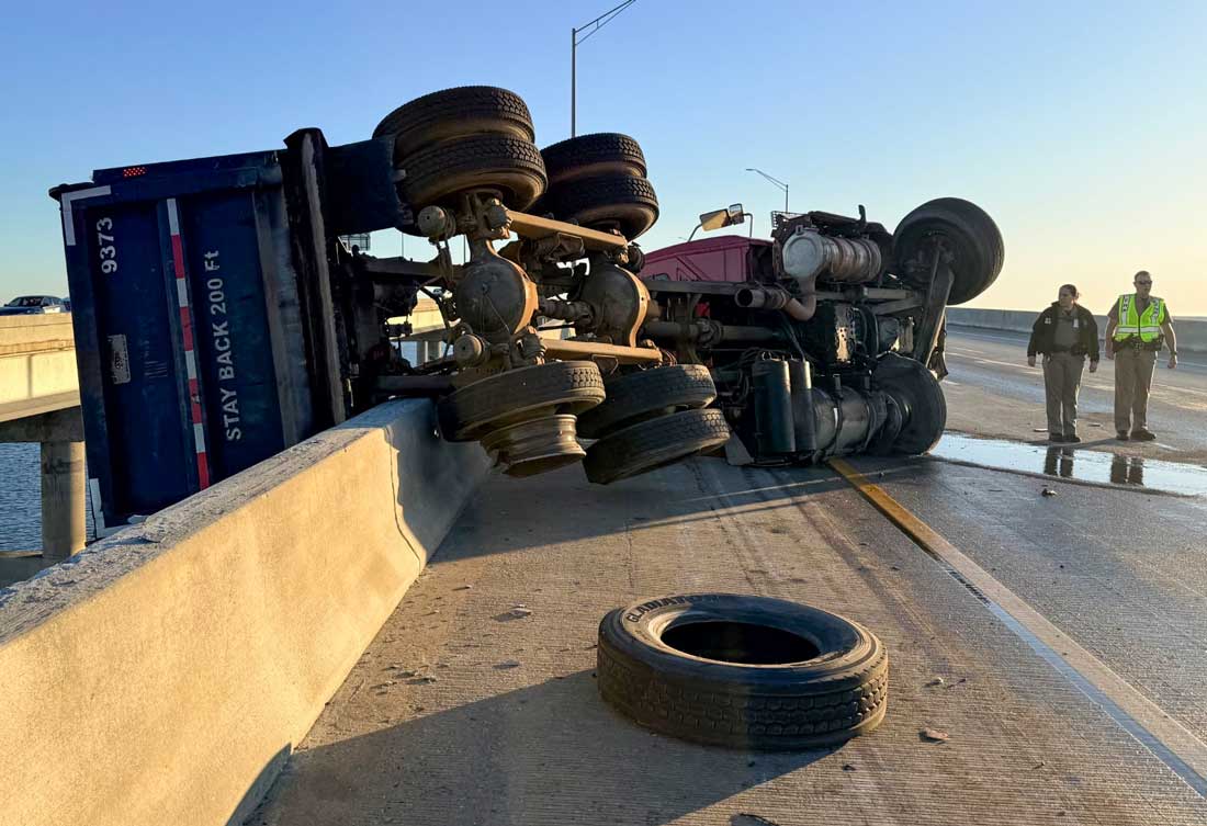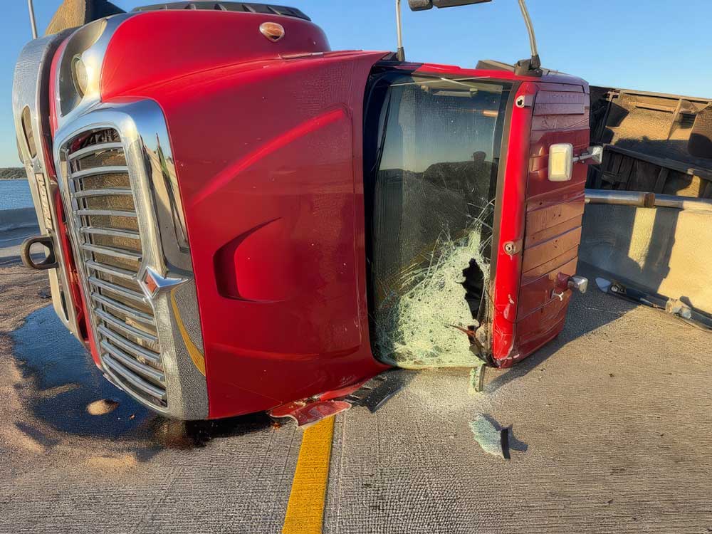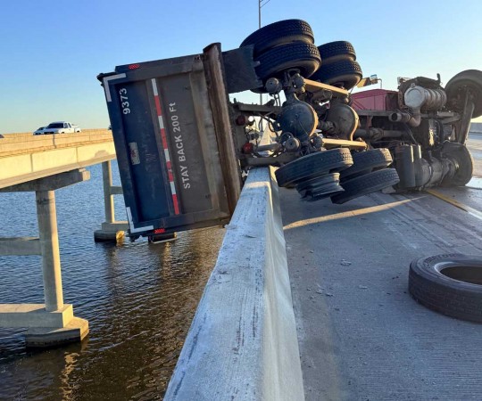 Dump Truck Left Hanging Over Escambia Bay Bridge After Tire Blowout