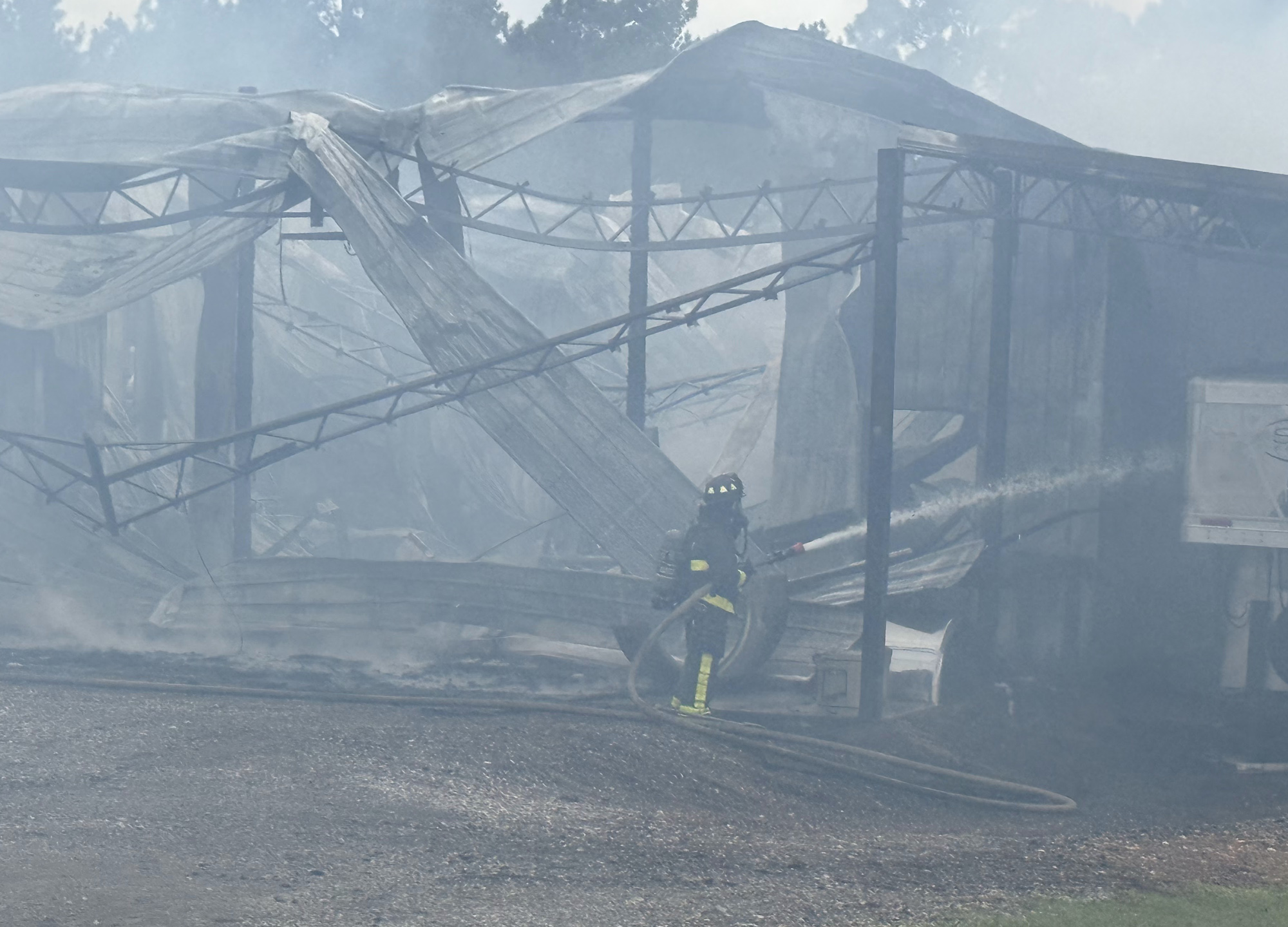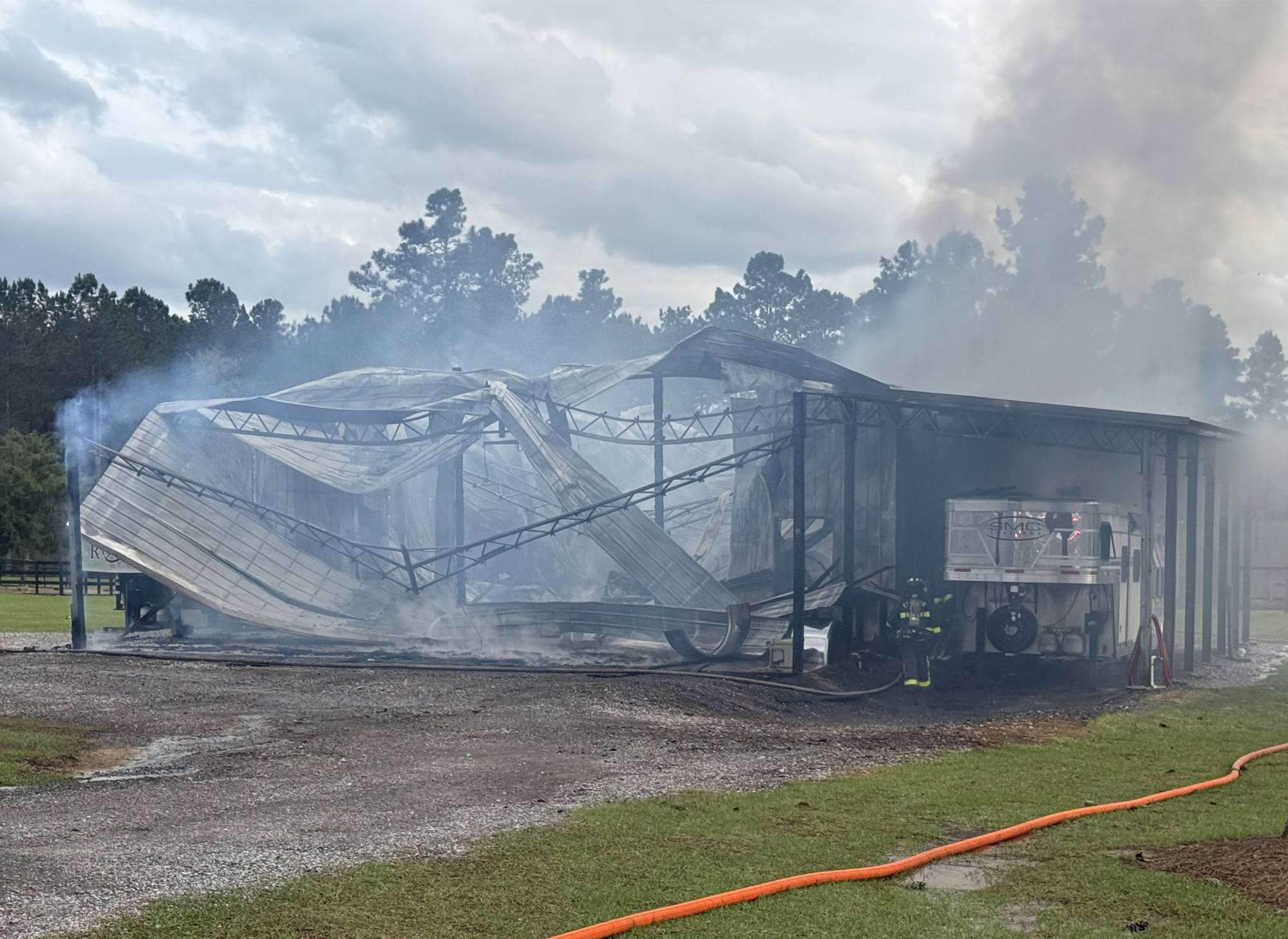 The approximately 2,400-square-foot barn was fully involved in fire shortly after the blaze was reported to Escambia County Fire Rescue around 3:30 p.m. on Sunshine Ride Court, off Sunshine Hill Road west of Highway 97.