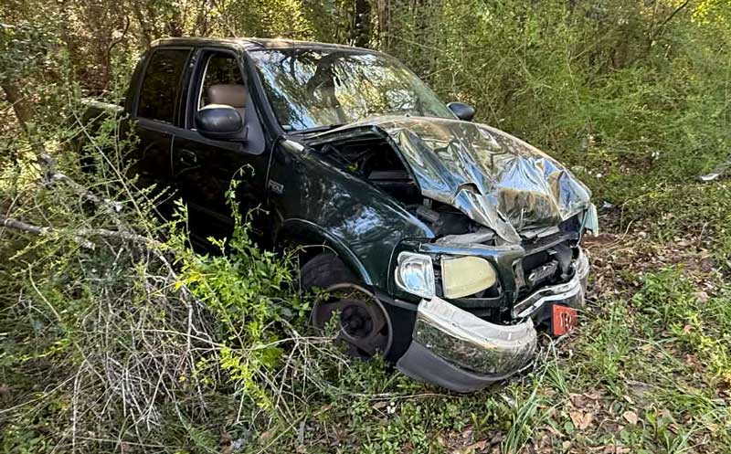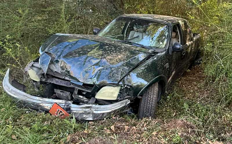 There were no injuries in a single pickup truck crash on Sunday afternoon near Molino.
