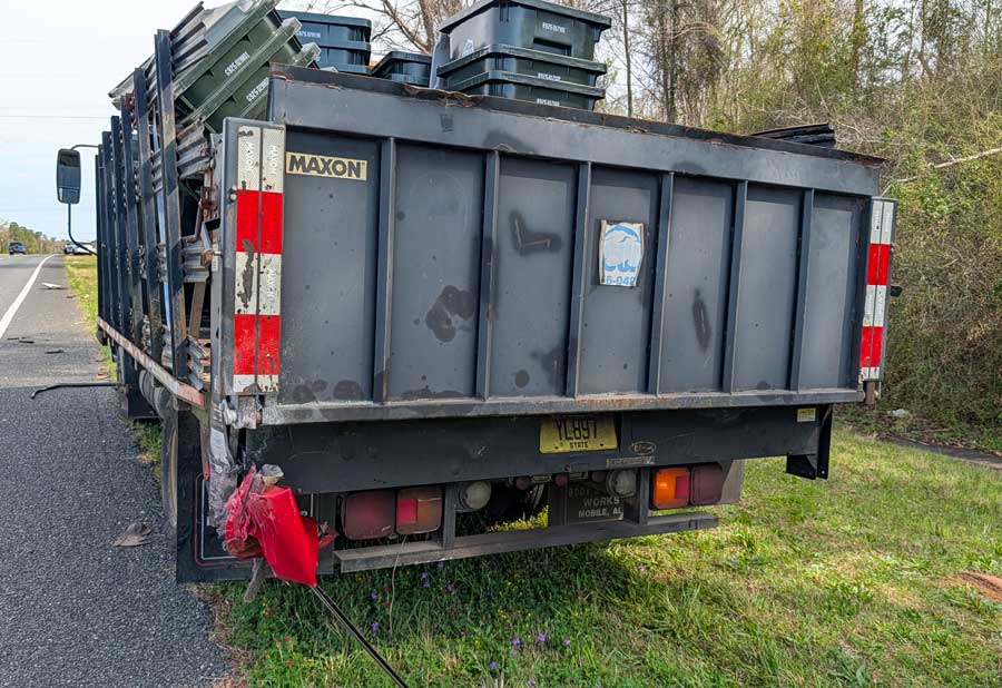 The driver of a Pontiac Grand Am was northbound on Highway 29 north of Highway 164 when the vehicle struck the rear corner of an ECUA delivery truck that had reportedly stalled and was pulling off the roadway.