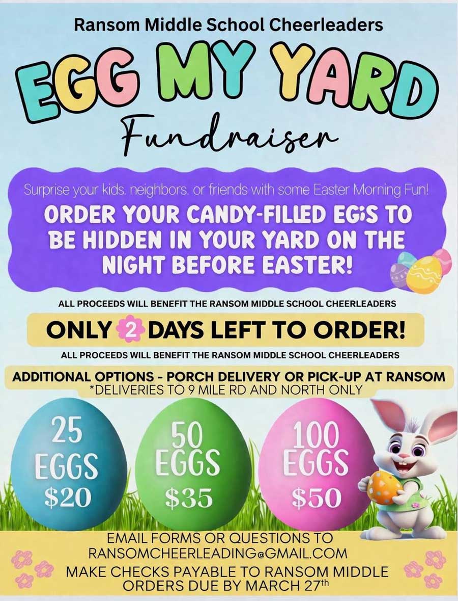 ime is running out to sign up for the Ransom Middle School Cheerleaders Egg My Yard fundraiser.