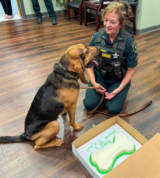 Sheriff Chip Simmons had the honor of presenting Sadie with a well-deserved retirement cake to celebrate her career and dedication.