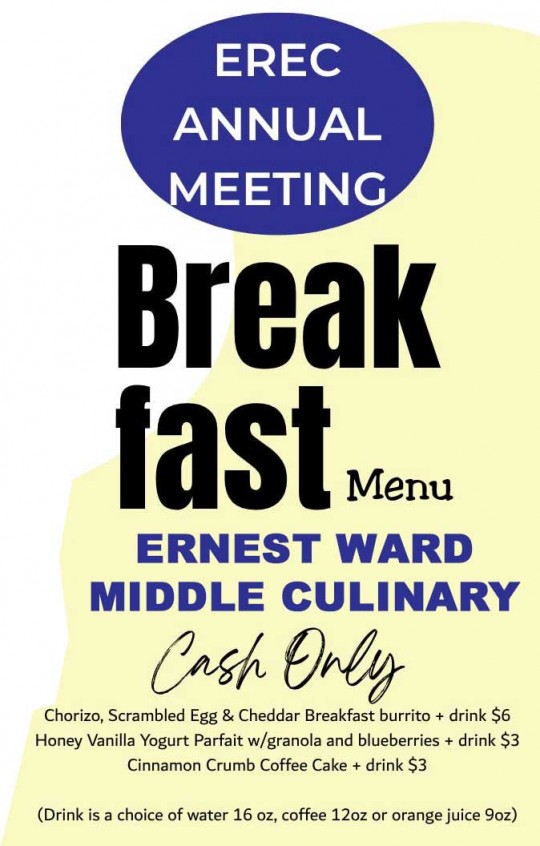 Breakfast will be available for cash only, with proceeds going to the EWMS culinary arts program (menu pictured left).