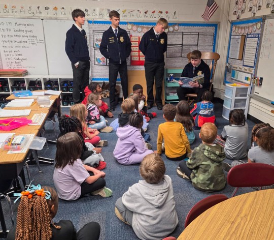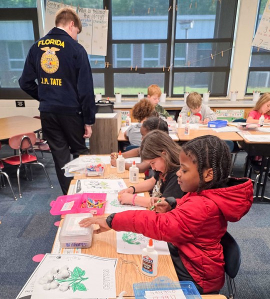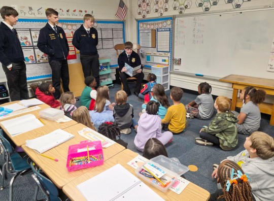Members of the Tate High School FFA visited with the students, reading to them and taking part in educational activities.