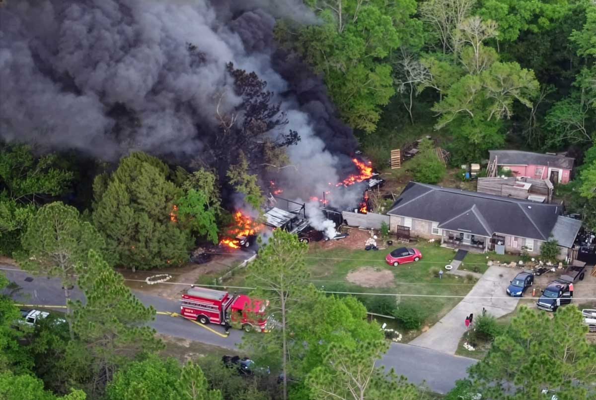Fire destroyed a shed and vehicles on Saturday afternoon in the Quintette community, but Escambia County Fire Rescue worked feverishly to save an adjacent home.