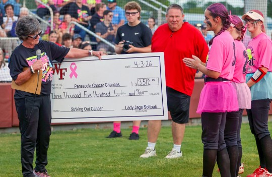 Friday night was Wyatt’s final Strike Out Cancer Game at Tate High School; she has announced her retirement from coaching at the end of this season.