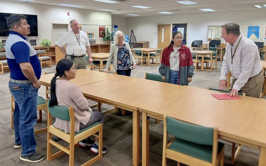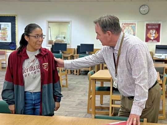Superintendent Keith Leonard and Director of High Schools Lesa Morgan presented the scholarship.