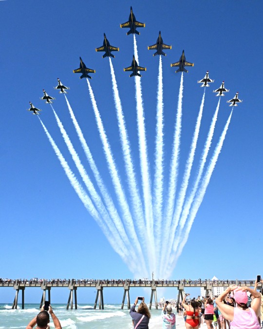 Photos: Blue Angels, Thunderbirds Perform Super Delta Over Pensacola Beach
