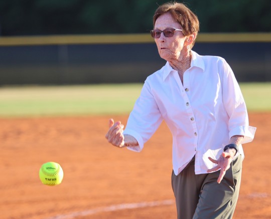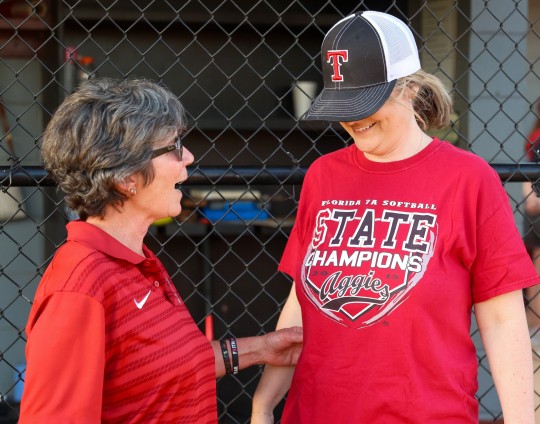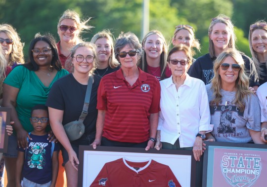 Her friend and predecessor, legendary former Tate head softball coach Charlene Varnell, joined in the celebration and tossed the first pitch at Friday’s game at the school’s Charlene Varnell Field. Wyatt almost caught it. At the time of her retirement, Varnell was the winningest softball coach in Florida high school history with 597 career wins and nine state tournament appearances.