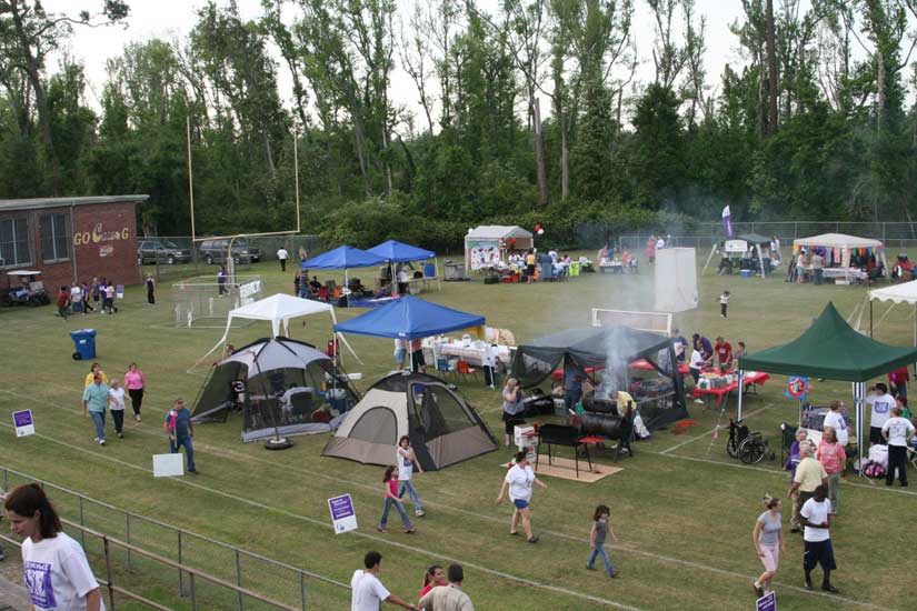 The relay began with a survivor’s lap early Friday evening. About 225 people were on hand as cancer survivors wearing purple “Survivor” shirts walked a victory lap around the stadium as the number of years they have been cancer free was read aloud.