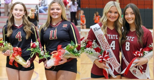 Pictured above: (L-R) No. 4 Julianna Little and No. 11 Sophia Adkins from Northview, and No. 4 McKenna Lister and No. 8 Gianna Smart from Tate at their respective Senior Nights. NorthEscambi.com photos, click to enlarge.