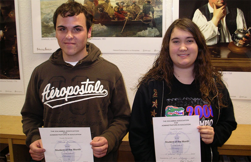 Northview High: Olivia M. Nolen, 11th grade; Patrick R. Garrison, 11th grade.Pictured above: Northview’s Students of the Month for February Patrick R. Garrison and Olivia Nolen. Submitted photo for NorthEscambia.com.