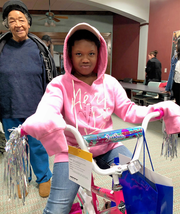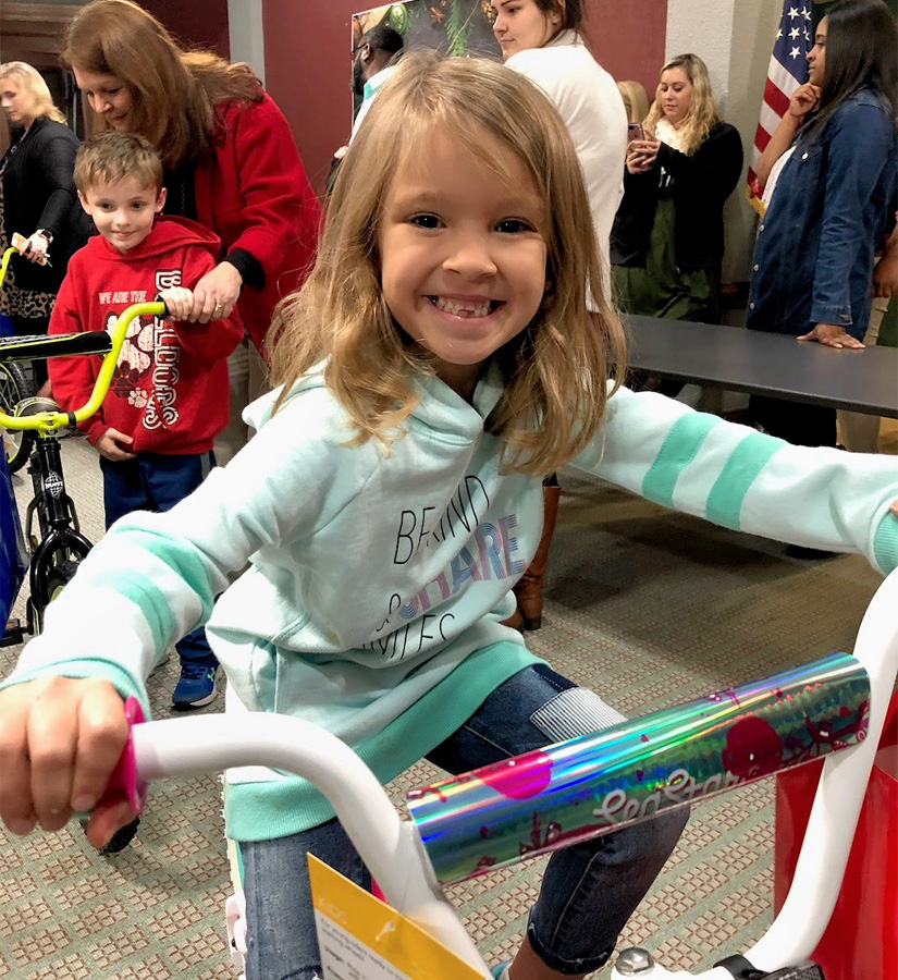 The company also donated new helmets along with the bicycles as part of the their corporate “give back” project.