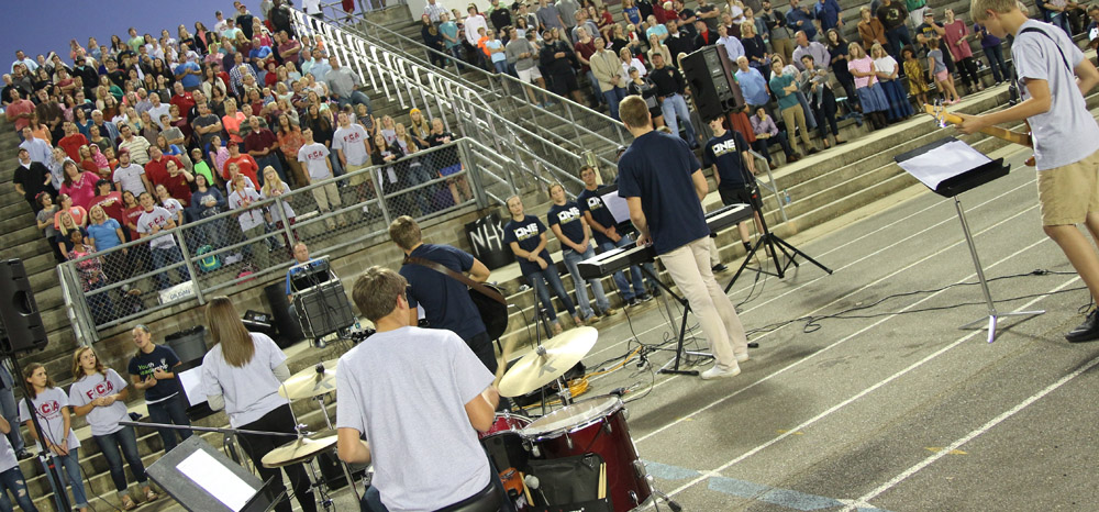 The Northview High School Fellowship of Christian Athletes (FCA) sponsored a student led worship event “Fields of Faith” Wednesday night in the Tommy Weaver Memorial Stadium.