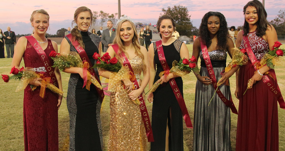 Homecoming court members were freshmen Briana White, Payton Jackson, Teriana Redmond; sophomores Ashtyn Carnley, Madison Sherouse, Shelby Bashore, Olivia Seals; juniors Natasha Walker, Celeste North, Madison White; and seniors Peighton Dortch, Autumn Albritton, Brittany McLemore, Mallory Gibson, Morgan Myrick and Zipporah Harris.