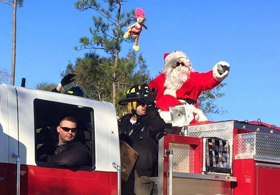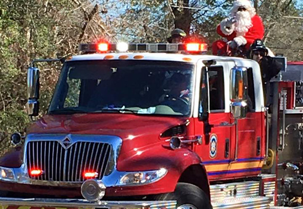 Santa make a special visit to numerous good boys and girls in the Beulah area Saturday. He traded in his sleigh for a fire engine for a ride along with the Beulah Station of Escambia Fire Rescue. Submitted photos for NorthEscambia.com, click to enlarge.