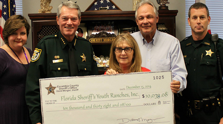 The annual In Hot Pursuit 5K on Pensacola beach last month raised just over $10K for the Florida Sheriff’s Youth Ranch. Sheriff David Morgan presented the group with a check for$10,038.08 on Monday.