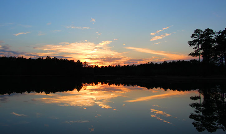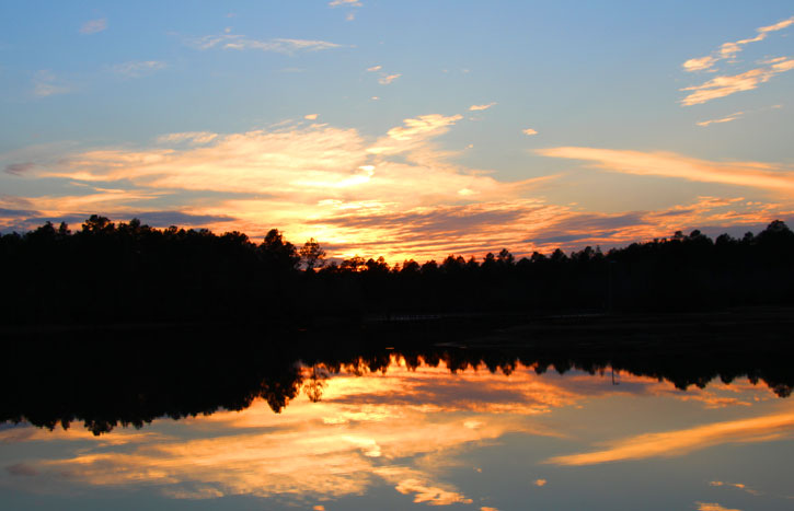 Pictured: The setting sun slips behind the trees Thursday evening at Lake Stone in Century. Lake Stone is a 130 acre man-made lake constructed in 1967. It has an average depth of six feet and a maximum depth of 22 feet. The 100 acre park, owned by Escambia County, includes a campground and boat ramp. NorthEscambia.com photos, click to enlarge.