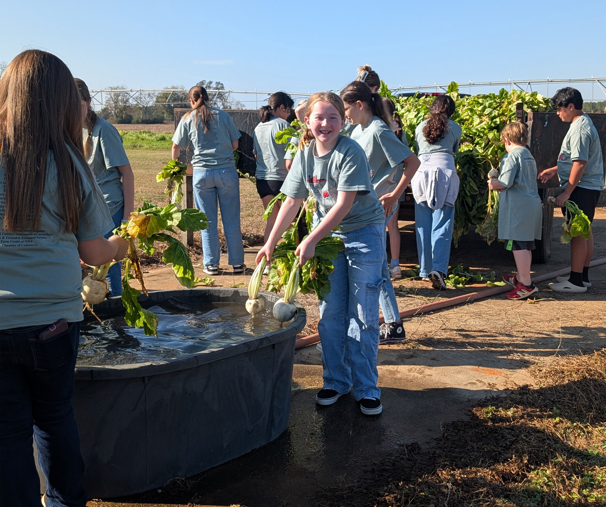 Earlier this week, students and volunteers from Escambia and Santa Rosa counties worked in fields near Jay to harvest vegetables that will help feed about 1,000 needy families for Thanksgiving.