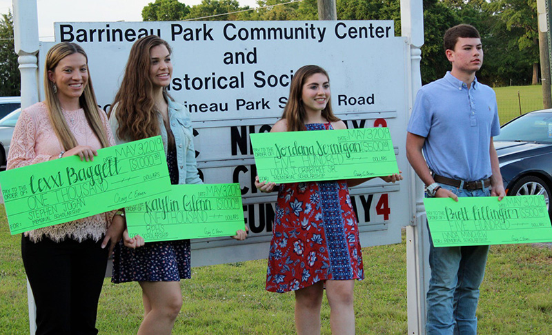 Friday evening, the Barrineau Park Historical Society presented four deserving high school seniors with college scholarships. The scholarships were presented to Lexxi Baggett, Northview High School; Kaylin Glenn, West Florida High School; Jordana Jernigan, Tate High School; and Brett Fillingim, Tate High School. Photo for NorthEscambia.com, click to enlarge.