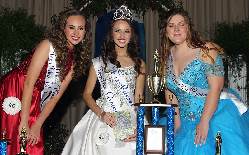 Teen Miss (14 years old to 12th grade) L to R: 1st–Randi Avery; Queen–Ansley LaSala; 2nd–Whitney Kimbler.