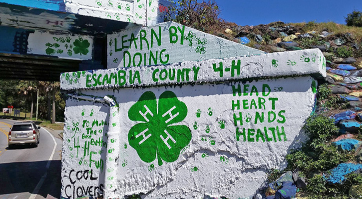 The Cool Clovers 4-H Club in Escambia County painted the “graffiti bridge” Thursday to mark National 4-H week. The Escambia County Commission recently proclaimed October 1-7 as National 4-H Week in Escambia County. Photo for NorthEscambia.com, click to enlarge.