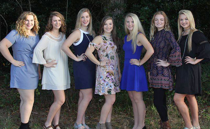 Members of the Jay High School Homecoming Court have been named. They are (L-R) Emily Brown, junior; Makenna Locklin, freshman; Kameryn Lewis, senior; Kolby Bray, senior; Autumn Ates, senior; Briannah Lowe, senior; and Lydia Bell, sophomore. Jay will celebrate Homecoming Week October 16-20, with the Royals hosting J.U. Blacksher (Uriah, AL) on the 20th. Prior to homecoming, Jay will host the Northview Chiefs this Friday night and have an open night on October 13. Courtesy photo for NorthEcambia.com, click to enlarge.