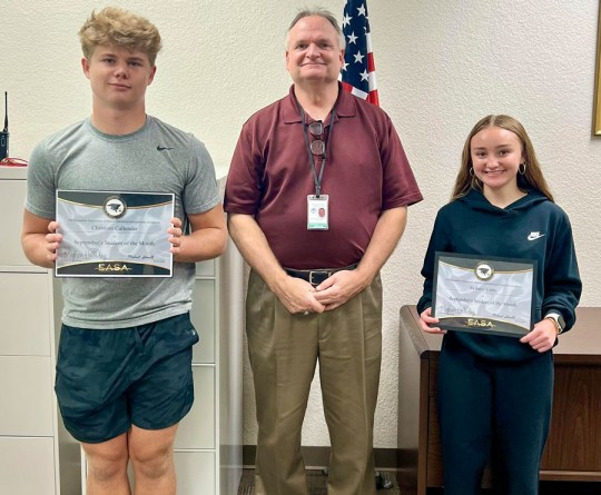 Northview High School recently named its Students of the Month for September. Pictured with Principal Michael Sherrill., they are Christian Callender (left) and Sydney Little. Photo for NorthEscambia.com, click to enlarge.