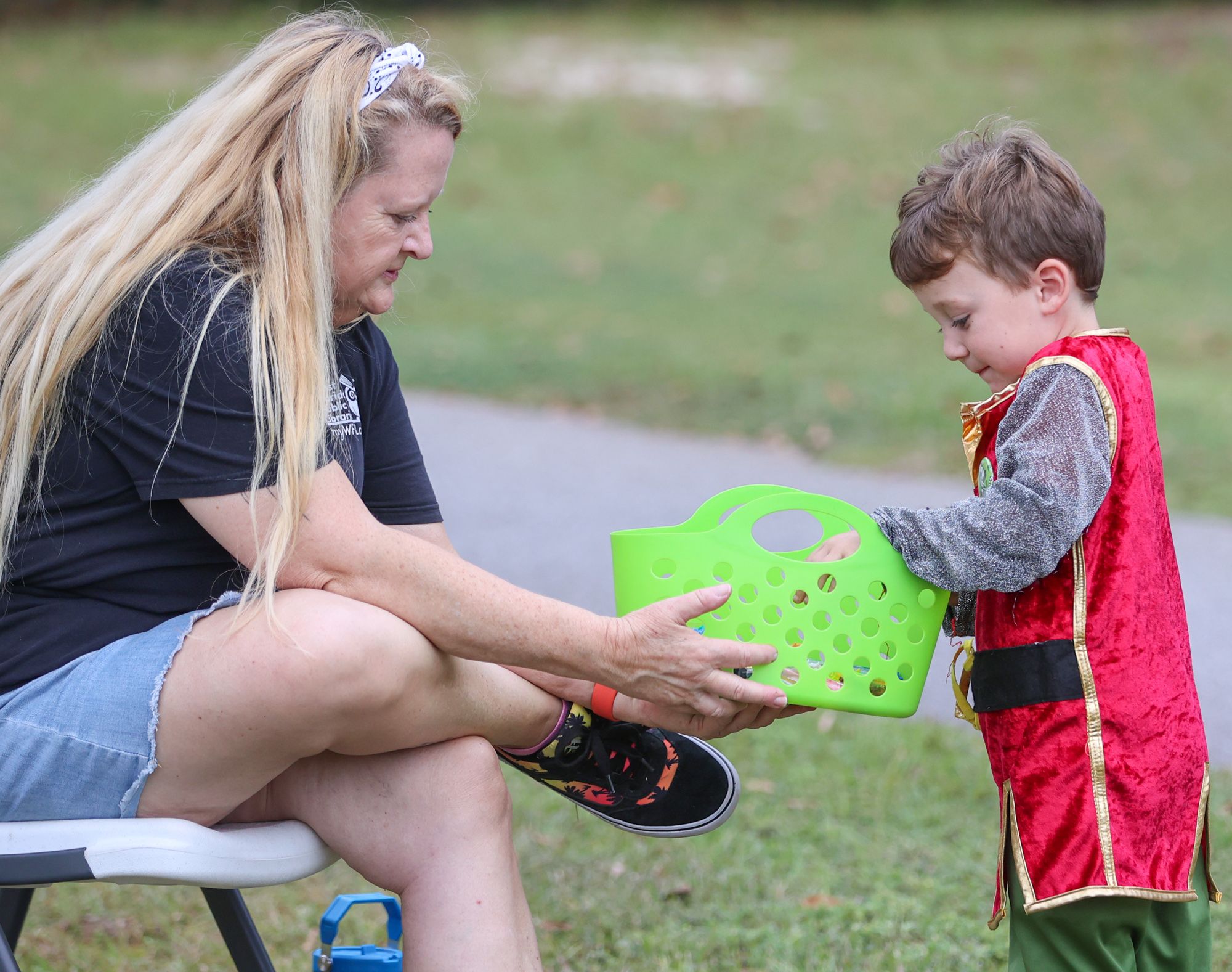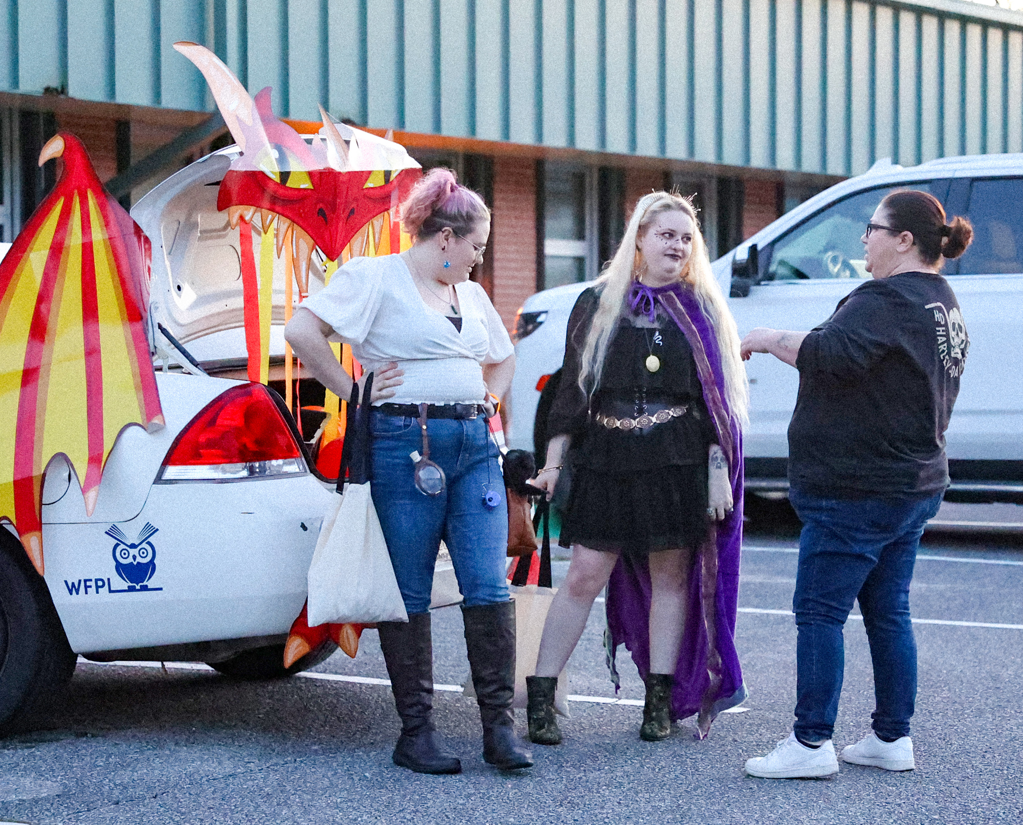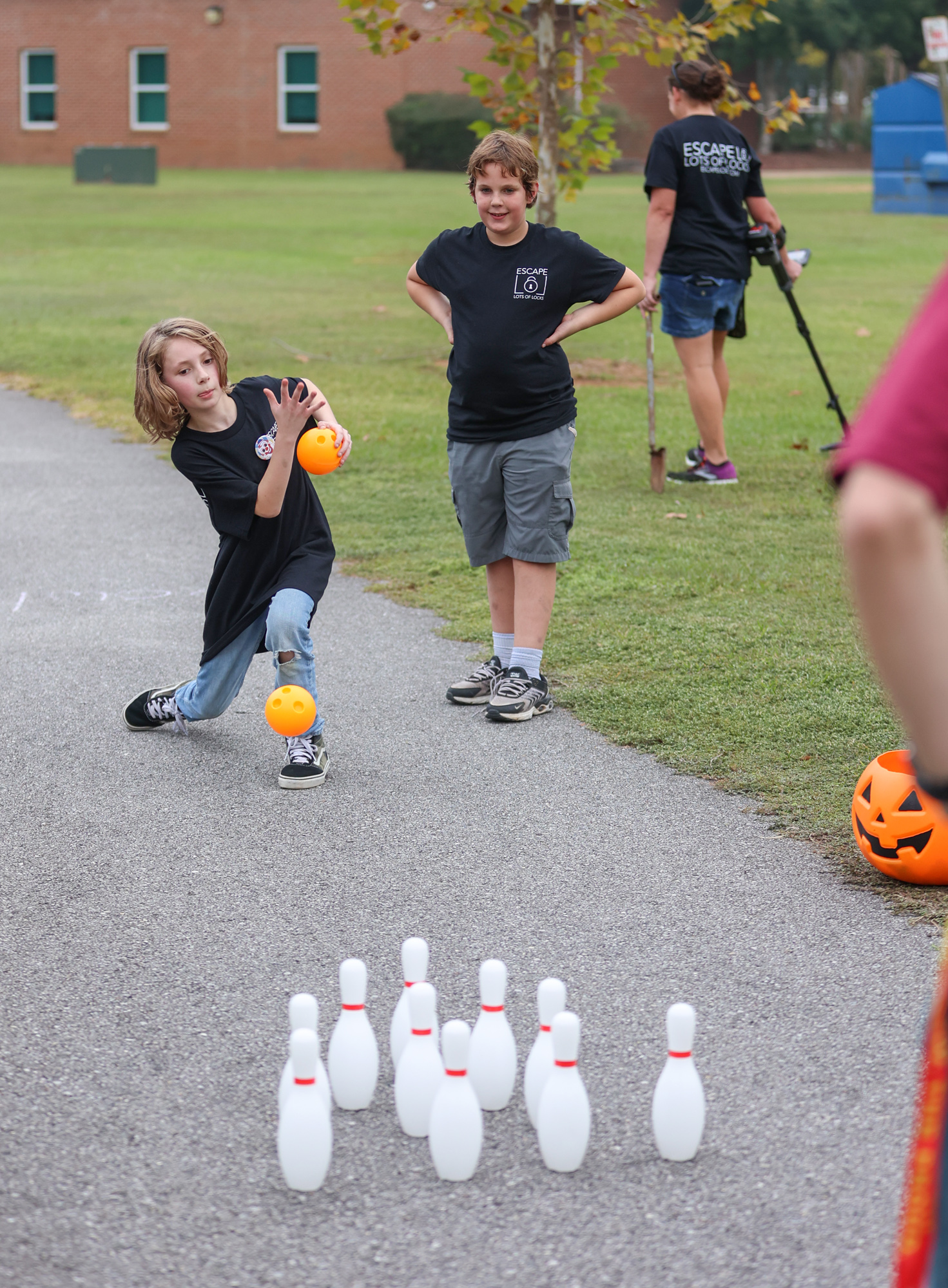 On the walking track behind the library, attendees wandered through festive stations featuring spooky crafts, zombie bowling, a haunted bean bag toss, and more ghoulishly delightful games.