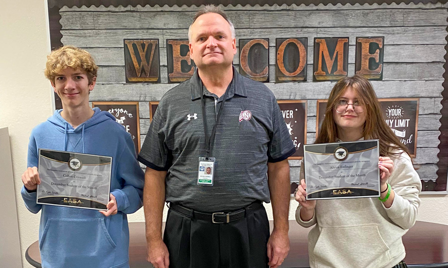 Northview High School recently named their Students of the Month for December. They are Colton Criswell and Alysia Enfinger. They are pictured with Principal Michael Sherrill. Photo for NorthEscambia.com, click to enlarge.