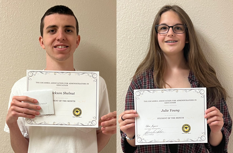 Tate High School recently named their March Students of the Month. They are Julie Young and Jackson Shelnut. Photos for NorthEscambia.com, click to enlarge.