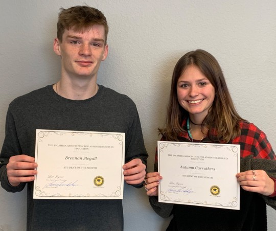 Tate High School has named their Students of the Month for December. They are Brennen Stegall and Autumn Carruthers. Photo for NorthEscambia.com, click to enlarge.