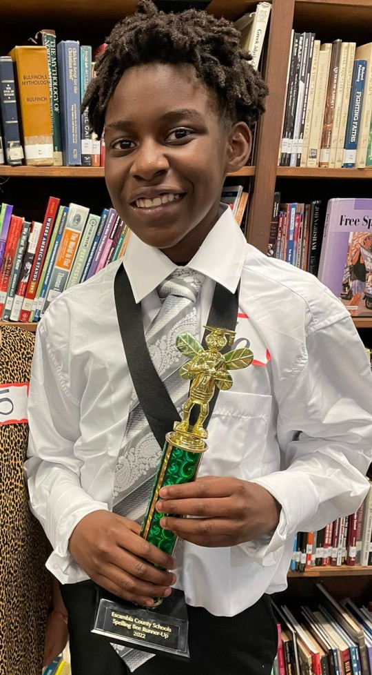 Caleb and Officer Gulley were both winners Thursday in the spelling bee.