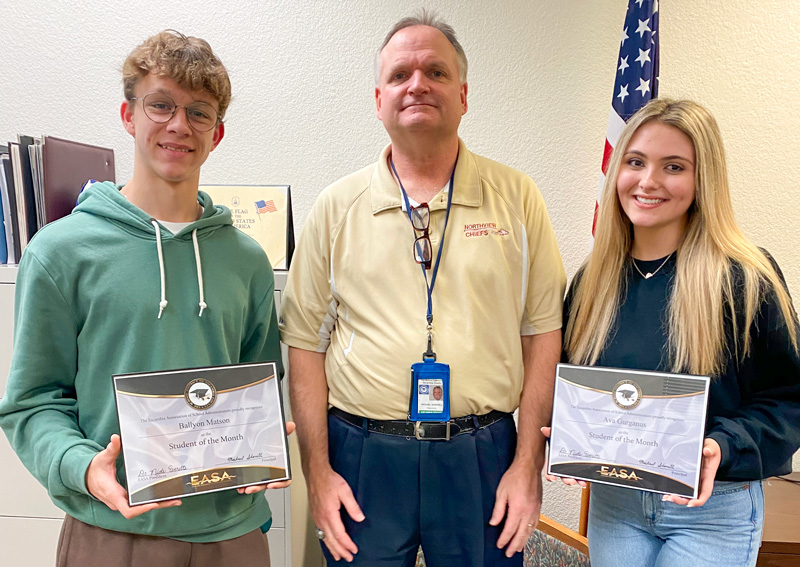 Northview High School has named Students of the Month for January. They are junior Bayllon Matson and sophomore Ava Gurganus. They are pictured with Principal Michael Sherrill. Photo for NorthEscambia.com, click to enlarge.