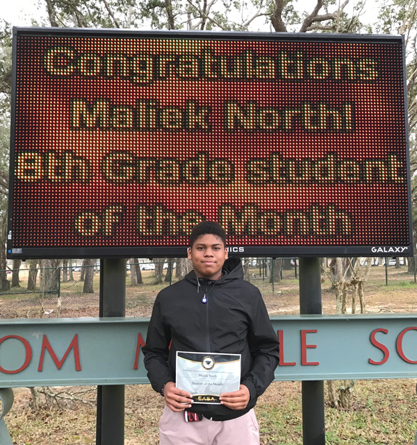 Ransom Middle School has named their Students of the Month for January. They are Kelly Wong and Maliek North. Photos for NorthEscambia.com, click to enlarge.