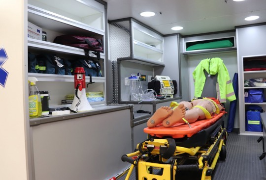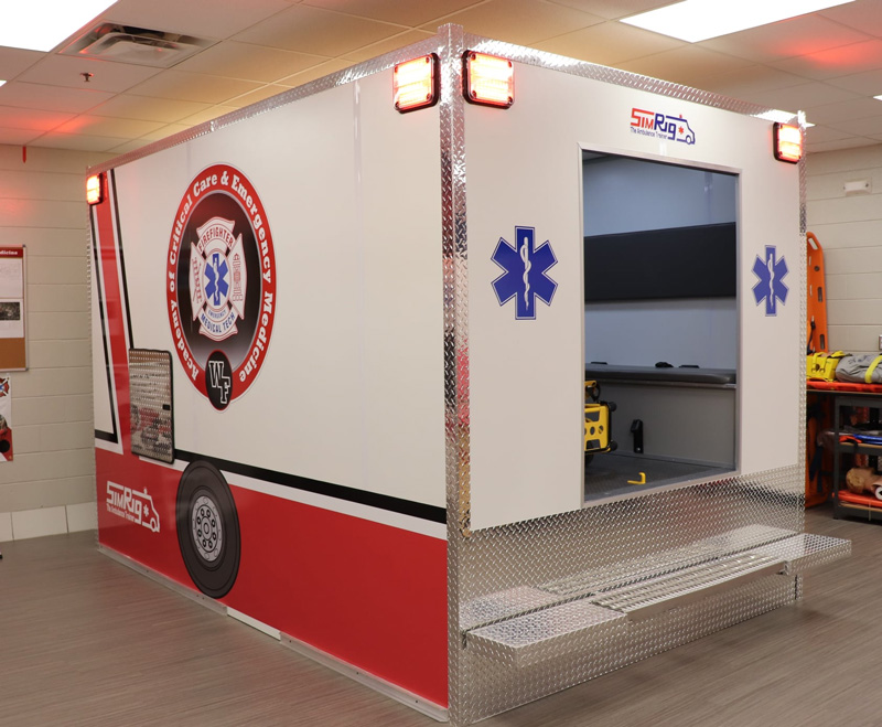 Realistic equipment such as working suction, oxygen administration, and physical attributes such as patient loading and unloading, confined quarters, and various distractors, allow the instructor to build and present patient care scenarios which test the students’ ability to apply critical thinking skills to a variety of ever-changing trauma and medical care problems.