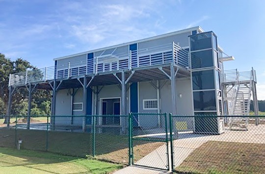 The two story facility will serve as additional locker room space for the SEC Women’s Soccer Tournament and other sporting events. Features at the facility include restrooms and showers for team sports use, an open space with sliding walls on the first floor, and meeting and office spaces on the second floor. The open space on the first floor will be available for rent and can be used for meetings, birthday parties and other events.