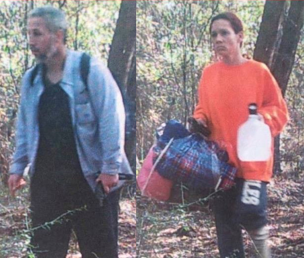 Pictured top: Billy Boyette and Mary Rice captured on a game camera. Pictured below: The scene at the home of Kayla Crocker in Beulah shortly after her 2017 murder. NorthEscambia.com photos.