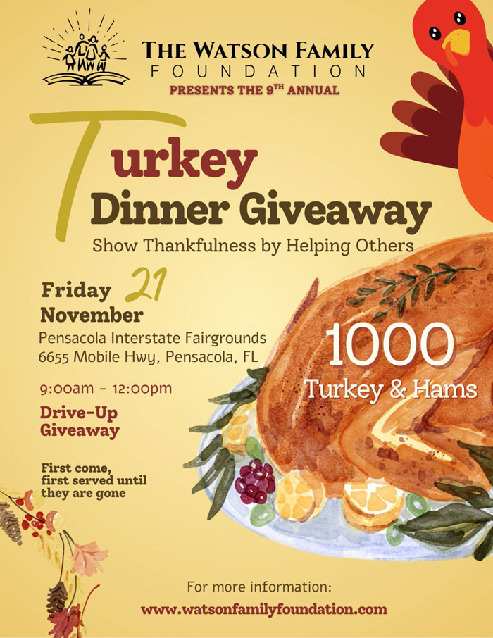The Watson Firm, together with local businesses and entrepreneurs, will be serving their neighbors at their Annual Community Thanksgiving Grocery Giveaway on Friday at the Pensacola Fairgrounds.